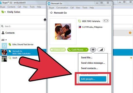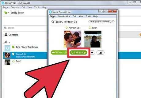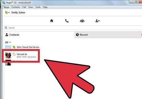 Start a chat. Once you’ve signed into your account, click the name one of your friends that you want to have a group call with from the Contacts panel at the left-hand side of the Skype window. This will show the Conversation panel at the center of the application’s window where you can type in your message and chat with that person.