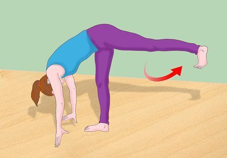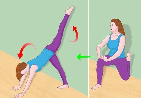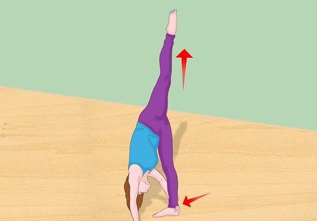 Bend your standing leg when in the pose. Bending and then straightening your standing leg when you are in a Standing Split is a minor but powerful variation that really deepens and the stretch and works the muscles. Once you are in a Standing Split, carefully bend the knee of your standing leg and sink a little into the stretch. Then straighten the knee and bring your raised leg up even higher.