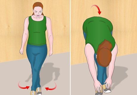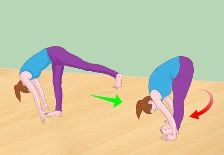 Deepen the stretch. You can deepen the stretch even further once you have elevated one leg up behind you. Carefully walk back your hands towards the heel of your right foot, and bring your torso in close to your standing leg. You can also tuck in your chin. Breathe deeply as you do this, and try to relax your shoulders.
