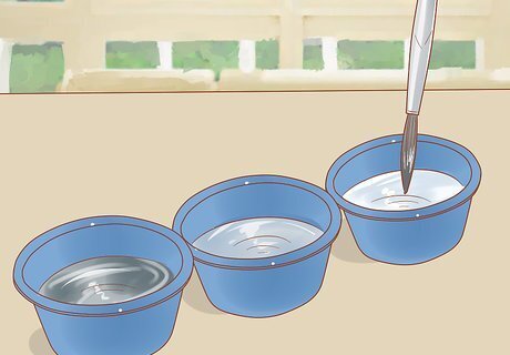 Clean your brushes thoroughly with paint thinner or mineral oil. Fill three separate cups with paint thinner—one to remove excess paint, another to clean it, and a final one to get rid of any remaining pigment. If you allow the enamel paint to harden at all on your brush, it will be ruined and you’ll have to buy a new one. Once the brush is clean, oil the tips with lard or brush oil. You can also use petroleum jelly.