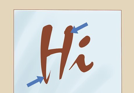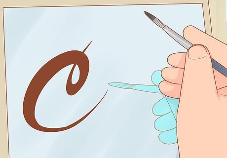 Go over your design and plan out the individual brushstrokes. Before you even begin painting, it’s a good idea to map out how you plan to approach each letter. As a general rule in sign painting, upwards strokes are thin and downwards strokes are thick—considering the weight of each stroke in the letters you plan to paint, mark which strokes should go upwards and which should go downwards. Also determine the points at which your individual strokes will connect, to make the letter appear continuous.