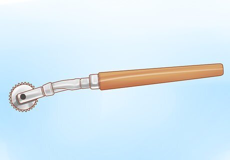 Find a pounce wheel and pounce pad for transferring your design. A pounce wheel is a spiked metal wheel attached to a handle. Once you’ve drawn your design on a piece of paper, you will use this wheel to perforate the edges of the design. Then, you’ll tap on the design with a pounce pad—a tool that holds chalk powder—to leave a chalk outline of your design on the surface you plan to paint. Pounce wheels and pads are usually found at fabric stores, since they are also used for sewing.