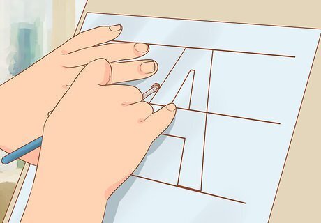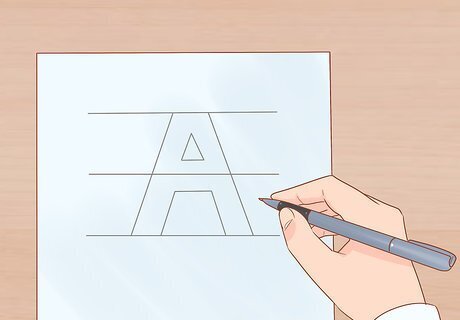 Trace or draw your design on a sheet of paper. Make sure the pattern will fit onto the board or wall you plan to paint. Use a ruler and a pencil to trace two parallel lines, which mark the top and bottom of your letters. Use one of the alphabets you’ve been practicing, or style the letters freehand.