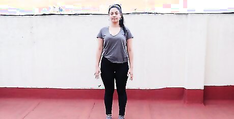 Stand in mountain pose. Spread your toes and the soles of your feet to ensure you are firmly balanced. Make sure the outer edges of your feet are parallel to each other. Spread your weight evenly between your legs and feet as well as your chest and arms. To align your spine, stack your ribcage over your hips. Mountain pose is the basis for many standing yoga poses. The mountain pose is both a relaxed and alert posture.