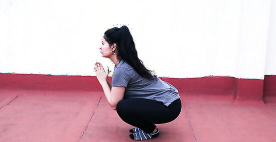 Be aware that garland pose can also make hips more mobile. Yoga is great for opening up your hips and increasing your flexibility. You can try to change this pose as you become more experienced to strengthen your hips. After you’ve been doing the garland pose for a while, try to bring your feet closer together. This will help to build your hips up even more.