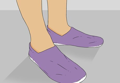 Use water shoes. A lot of water aerobics courses require you to walk in the pool, or lift your legs, or move in some fashion. Wearing water shoes that grip the bottom of the pool not only prevent you from slipping, they also protect your feet. Water shoes are rarely required for a course, so if you prefer not to wear them that's ok too.