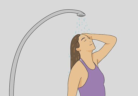 Shower before entering the pool. Most gyms require that you shower before you enter the pool. This doesn’t have to mean a full shower, but you should at least rinse off. This way dirt and body oils don’t get into the pool water.