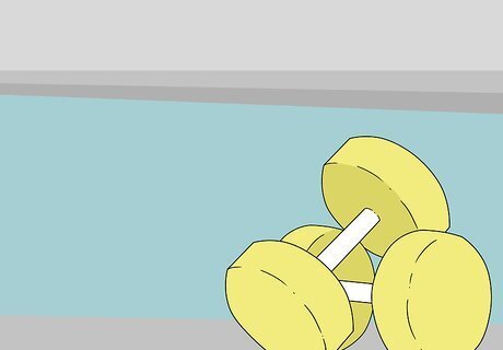 Get the right equipment. Most water aerobic moves use only the resistance of the water to give your body a good workout. For some water aerobic workouts, you'll also need a pool noodle or kick board and some light hand weights.