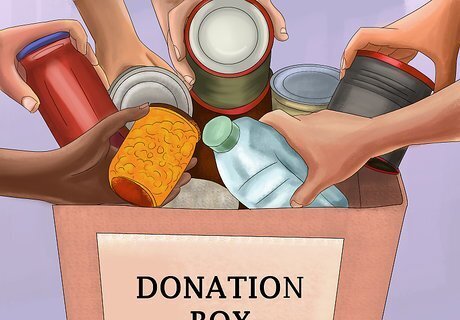 Deliver the food to designated places at designated times. Many institutions only collect items on certain days and times. Ask them for this information before you plan to make your drop-off.