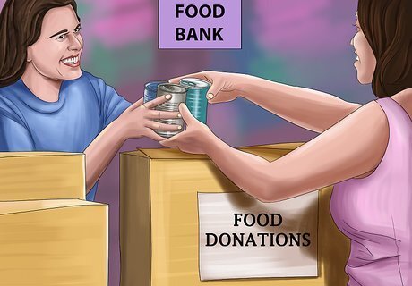 Donate your time. There are an overwhelming number of volunteer opportunities at the various institutions feeding the hungry. They can usually accommodate people of any age with any health concerns, and often the work is fun. Duties range from sorting fresh produce, to serving food at pantries, to answering phones, and many more.