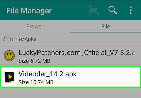 Open the file you just downloaded. It's called Videoder_v14.apk, though the version number will vary. You'll find it in the Downloads folder, which you can access by tapping Downloads in the in the app drawer. If you don't have a Downloads app, open your file manager app (usually called File Browser, File Manager, or My Files), navigate to the Downloads folder, and tap Videoder_v14.apk.