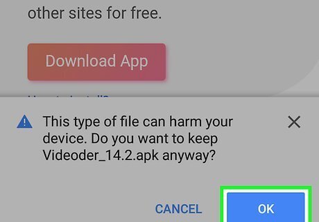 Tap Download App. It's on the Videoder homepage. A warning message will appear.