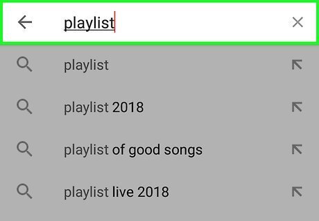 Find a playlist to download. You can search for a playlist by tapping the magnifying glass icon. To find a playlist you created, tap Library, and then scroll down to the Playlists section.