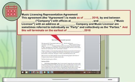 Specify how long the agreement will last. Some music publishing contracts grant the publisher an exclusive publishing right, which relates to the entire output of the songwriter for the duration of the contract. Others only last for a specific term. Where a publishing contract lasts for a specific term, it typically continues for several years. Contracts set to expire after a number of years usually also include options for renewal. These options periods are triggered on a certain date and may give the publisher the right of first refusal – meaning when the contract expires, the songwriter must give the publisher the opportunity to renew the contract before he or she goes shopping for another publisher. Keep in mind that the term of the contract is separate from the copyright assignment. Some contracts may not include a specific term because the copyright is assigned for the life of the copyright (the life of the songwriter plus 70 years). With these agreements, the contract's "term" technically ends when the songwriter has delivered the songs or copyrights to the publisher.
