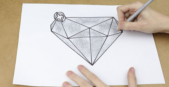 Color in your diamond. Leave the corners of the diamond white so your diamond looks reflective. Then, shade in the rest of the diamond with gray or light blue. You can also use other colors like green and dark blue.