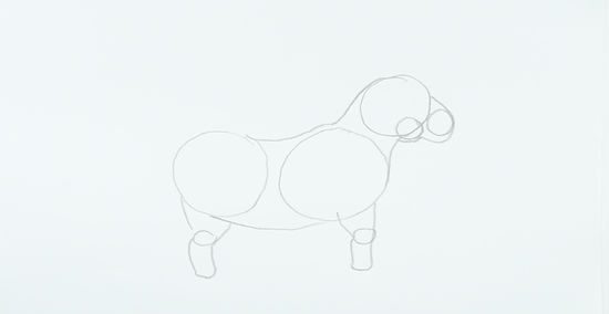 Outline your pony's legs. To outline your pony's legs, start by drawing 2 more circles overlapping with the first 2 circles you drew. Then, draw 2 vertical lines extending down from each circle. You can also add a small circle in the middle of each vertical line to outline the joints in your pony's legs.