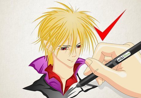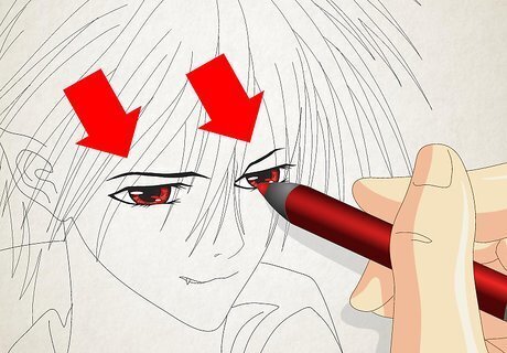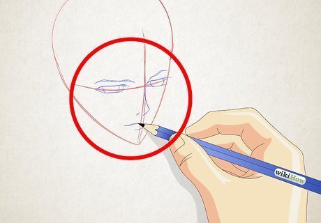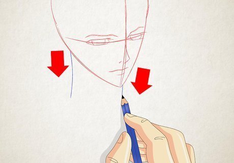 Draw the face. This is a simple step. With anime characters, the face is usually very pointy. For females, the face has a bit more of a delicate curve. Males have a stronger, more defined face. Typically anime-style vampires have even pointier faces than ordinary characters.