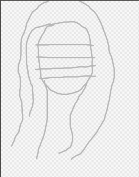 Create some light guidelines to help you place her features. This example uses horizontal lines going across the face. Notice the relationship between the lines, like the difference in space between them, or how her earlobes line up with her nose. There is more than one method to divide her face. If you're more comfortable with drawing a line across and one down, or something else, go with it. You should be comfortable with what you are doing when you draw.