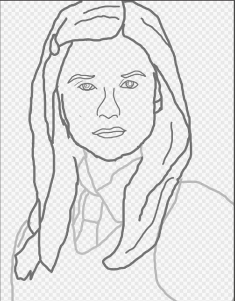 Refine everything! The facial structure, the clothes, everything! Do this until you are truly happy with your outline. Darken the lines you want to keep and erase everything else.
