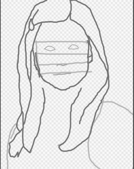 Indicate her hair with a few light lines. Detail should not be your main focus right now.