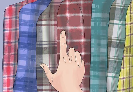 Look for plaid or neutral colored button up shirts. Plaid is a popular print in the pop punk world and you can wear this print on a button up shirt or a jacket. Look for red and black plaid or black and white plaid. You can also wear neutral colored button up shirts with a collar for a more put together day look, especially when paired with skinny jeans. Camouflage print is also popular in the pop punk world. You can wear camo print in the form of a t-shirt or a button up shirt with a collar.