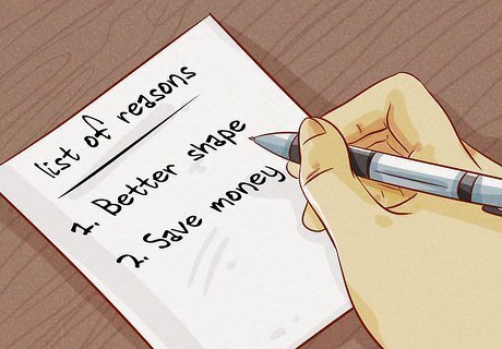Write down a list of reasons to cut back on drinking. If you’ve decided you’d like to start drinking less, it can be really helpful to put your intentions down on paper. Perhaps you want to get in better shape, save money, or are concerned about the quantity or frequency with which you’ve been drinking. Whatever your reasons, write them down on a piece of paper and keep it with you at all times. Putting the list in your wallet will remind you of your intentions every time you go to pay for a drink. Or take a photo of your list and make it the background of your phone so you see it often.