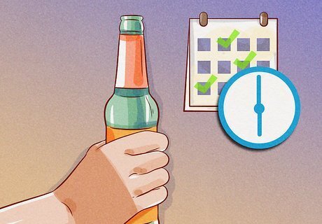 Limit when or how often you drink. When you’re making a plan to cut back on drinking, set limits and goals for yourself. Perhaps you want to drink only on the weekends or never before 6 pm. Perhaps you want to limit yourself to drinking only when you’re with other people. Or maybe you want to cut back on the number of drinks you consume, rather than the frequency. Keep in mind that what is right for you might not be right for other people. Everyone has their own limits and boundaries.