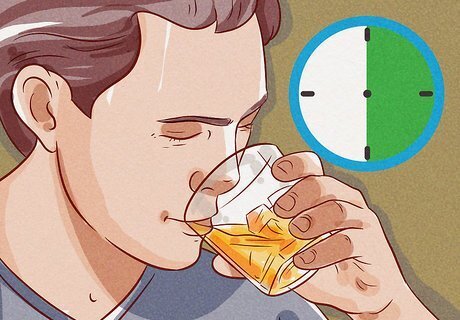 Limit yourself to 1 drink for every 30 to 60 minutes. When you start drinking, make a note of the time. Avoid having multiple drinks in a short period. For men, it’s recommended they drink 1 alcoholic beverage per half hour at a maximum, whereas for women, it’s recommended they drink 1 beverage per hour. Avoid gulping your drink. Instead, take small sips and try to enjoy the flavor of your chosen beverage. If it’s hard for you to drink slowly, try setting your drink down after each sip.