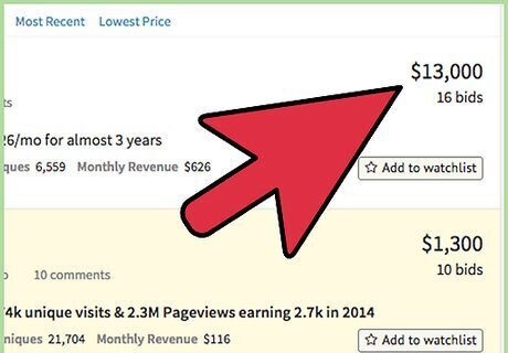 Set your price. Usually, websites sell for 3-5 times the yearly revenue. So if you had a blog for six months that made $30,000 in those six months, your yearly revenue would be about $60,000. You could then sell your site for $180,000 or more depending on your buyer. Bigger companies are most likely to spend larger amounts of money on a website than small companies are.