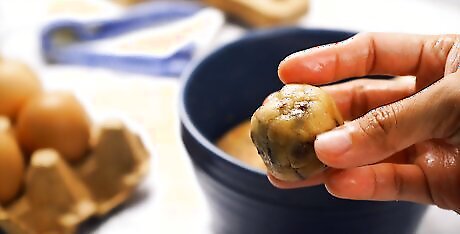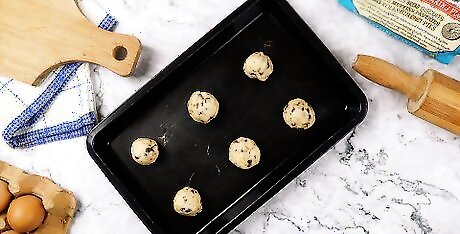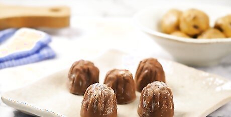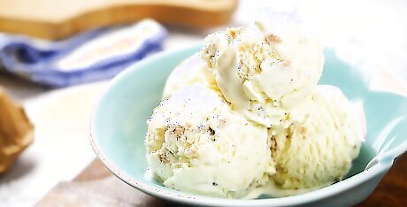 Make bite-sized cookie dough balls. Raw cookie dough that doesn’t contain eggs is safe to eat raw, and can be eaten alone or added to other desserts. To make cookie dough balls: Divide your favorite cookie dough into tablespoon-sized bits. Use your hands to roll the dough bits into small balls. Chill them in the fridge before serving to prevent them from becoming too soft and doughy. Use the dough balls immediately, or store them in an air-tight container in the freezer for up to 12 months.