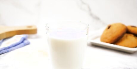 Wash it down with a beverage. Cookies are often served with a hot or cold beverage, such as tea, milk, hot chocolate, or coffee. To wash your cookie down with a beverage, finish chewing and swallowing your bite of cookie, then take a sip of your beverage.