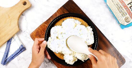 Make a cookie ice cream cake. Take a fresh batch of cookie dough and press it into the bottom of a greased nine-inch (23 cm) pie plate. In a 350 F (176.7 C) oven, bake for 20 to 25 minutes, or until the dough becomes golden brown. Allow to cool. When the cookie base has cooled, add enough of your favorite ice cream to fill the rest of the pie dish. Pack the ice cream down. Cut into slices and serve as is, or top with whipped cream or chocolate sauce.