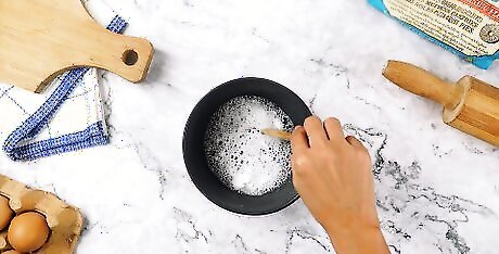 Mix the vinegar and baking soda together. Mix them in the small bowl and set the mixture aside to let it foam for a couple minutes.