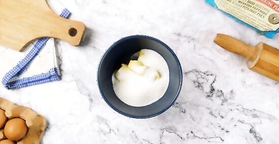 Cream the butter and sugar together. Use the medium bowl and the wooded spoon to mix the two until they form a smooth, creamy batter. Add the baking soda–vinegar mixture and the vanilla. Stir to combine. For a deeper, richer sweetness, try brown sugar instead of white sugar. For a smooth, nutty cookie, substitute half the butter for peanut butter, almond butter, or your favorite nut butter.