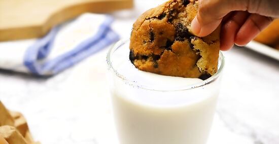 Dunk your cookie. Your beverage can also be used for dunking, which should be reserved for informal settings like at home or at a friend’s house Try not to dunk cookies in a formal setting, like at a dinner party or a fine-dining restaurant. To dunk a cookie: Hold the cookie by one end and dip the other end into a glass of milk, tea, or the like. Hold the cookie in the liquid for a few seconds: long enough for it to absorb some of the liquid, but not so long that the cookie begins to break apart. Put the wetted cookie portion into your mouth and bite it off. You can now eat the rest of the cookie normally, or continue dunking. When you no longer have enough cookie left, avoid dunking your fingers into your beverage to soak your cookie. Instead, eat the remainder of the cookie and wash it down with your beverage. You’ll likely find some tasty cookie bits at the bottom!