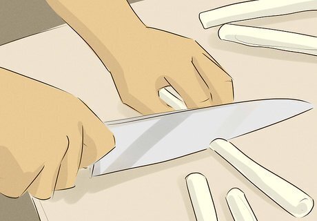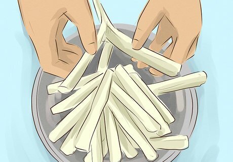 Clean and peel the roots. Clean the roots in fresh water. Then, use a regular vegetable peeler to peel off the rough outside of the roots. You should have white, tender root vegetables.