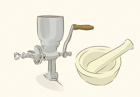 Grind the dried starch to make the flour. You can use a grain grinder or a mortar and pestle. Then, use the cattail flour alongside other flours or on its own to make bread or other dishes.
