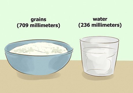 Make the dough. Mix three cups (709 millimeters) of grain with one cup (236 millimeters) of water. Combine the flour and water into a thick paste. Work the dough into small, half-inch (1.27 centimeter) thick patties, like little scones.
