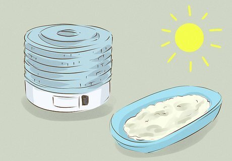 Dry the starch. Use a dehydrator to dry the starch. If you are camping, you could lay it out in the sun. If you are at home but do not have a dehydrator, you could use the lowest temperature in your oven.