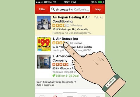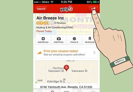 Search for the business you'd like to edit. Tap the Search button from the Search tab at the bottom of the screen, and type the name into the search box near the top. Tap the exact business listing that you'd like to make the edits for. After doing so, it'll bring up the business' Yelp page of the location that requires editing.