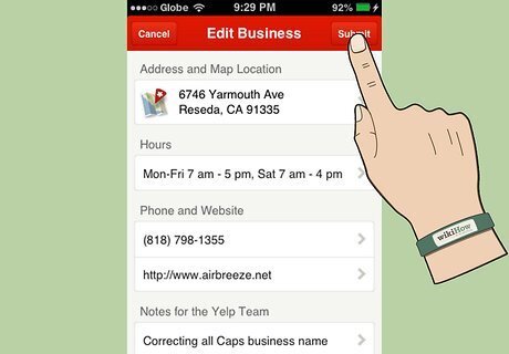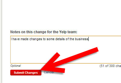Click the red and white "Submit" button when finished.Edit Business Information for the Yelp Database Step 6.jpg