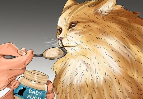 Offer baby food. If you can't get a cat to eat at all, particularly a sick cat, you can try baby food for a time. Stick to all-meat products, as cats cannot have foods like garlic or onions. You can offer the cat a little on a spoon or your finger to get it started.