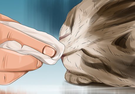 Wipe the cat's nose. If the cat has been sick, it may not be smelling very well. Wiping the cat's nose and trying to remove discharge may help it smell better. In turn, it may be more interested in food because it can smell it.