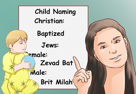 Tell your child that while Christians have their babies Baptized, Jews have a baby naming ceremony for boys called a Brit Milah and naming ceremony for girls called a Zevad Bat.