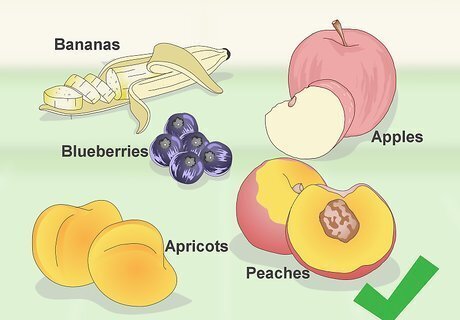 Feed your caique fresh fruit. Just like veggies, fruit can add necessary vitamins and phytonutrients to your caique’s diet. Offer a serving of fresh fruit each day (usually in the afternoon). Make sure you take the pits out from the fruit before you feed your caique. Purchase organic fruit (whenever possible), and remove any uneaten fruit after 24 hours. Some good choices include: Apples Peaches Apricots Bananas Blueberries Pears Plums