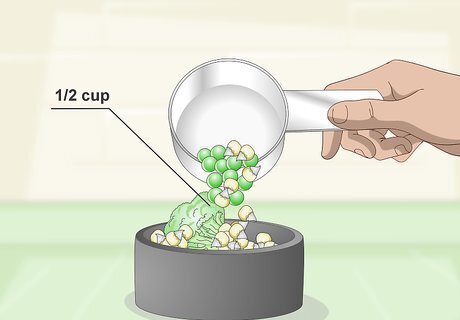 Experiment with food quantities. Unfortunately, there are no hard and fast rules about how much you feed your caique parrot at each meal. This will vary based on the size, activity-level, and appetite of your bird. Start by offering 1/2 cup (118 ml) of produce at each feeding. If your bird is leaving leftover food behind, gradually scale back the amount you serve them. If your parrot is quickly consuming everything you provide, you might try offering a bit more. At the morning feeding, you should also offer a serving of bird pellets (follow serving instructions on your product of choice). Keep an eye on your parrot's weight. If they are noticeably gaining or losing, you may want to adjust their serving sizes.