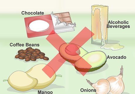 Avoid toxic foods. There are a number of foods that may upset your parrot’s digestive system, and some of these can even be poisonous. If you are not sure about a particular food, ask your vet before offering it to your caique. Some foods to avoid include: Avocado Coffee beans Alcoholic beverages Alliums (such as onions, garlic, leeks, shallots, and chives) Chocolate Grapefruit Mango
