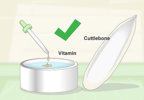 Supplement your caique’s diet with extra calcium. Caique parrot’s can benefit from a little extra calcium in their diet. You might ask your vet if they think supplementing calcium is a good idea for your bird. Some supplemental calcium options include: Vitamin drops added to water. Cuttlebone, a calcium block, gravel with oyster shell added to the cage for your bird to nibble on.