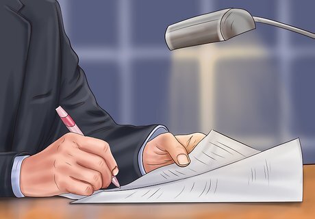 Prepare for your argument. The judge will probably want to hear argument on the summary judgment motion. Accordingly, you should prepare for your argument by doing the following: Read the other side's response. After receiving a copy of your motion, the other side can file its own motion and ask the judge to deny summary judgment. Typically, the other side will argue that there are material facts in dispute or that the law is unclear as to who should win. Outline your arguments. You shouldn't get up at your hearing and read from a script. Instead, outline your key points using bullet points. Attend a motion hearing. If you've never argued before the judge, then you might want to sit in on a hearing. Pay attention to how the lawyers talk to the judge and listen to the questions the judge asks. Also note how much time each side has to make its argument.