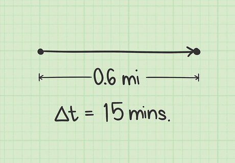 Measure the distance to the endpoint. You can calculate the average speed over any distance or length of time that you choose. The only limiting factor is the quality or precision of your measuring instrument. For example, measuring the speed of a sprinter requires accuracy within a few centimeters, while measuring the speed of a race car needs to be accurate to within a few feet or meters. To measure your walking speed from home to school, you could find the distance either by looking at a local map, or by traveling the route with a car's odometer. For this example, assume that the distance is 0.6 miles. For the Indy 500 race car, one lap of the Indianapolis Speedway race track is 2.5 miles. Therefore, check the car's position at any point on the track. When the car passes that same point again, it's distance will be 2.5 miles.